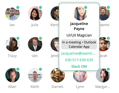 See your entire team's availability at a glance across multiple smart views. Interactive timelines reveal optimal meeting windows, while real-time status tracking shows who's online, in meetings, or on vacation. Contact anyone instantly via integrated Slack, email, or phone links, and share embedded links for seamless collaboration.